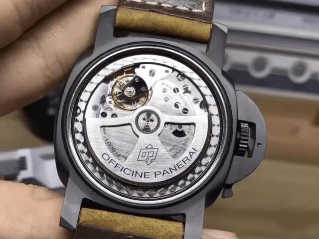為什么這樣說?我們可以看到441機(jī)芯的背部有個(gè)紅色的部分,正確的功能是動(dòng)能顯示來的,也就是說會(huì)根據(jù)441的動(dòng)能多少而產(chǎn)生變化,而vs的機(jī)芯則是單純對(duì)應(yīng)外觀,功能是擺設(shè),不會(huì)動(dòng)的。這可以說是機(jī)芯的最大敗筆了。但我們依然不能否認(rèn)vs在機(jī)芯方面已經(jīng)做出飛躍性的進(jìn)步!研究多年根據(jù)結(jié)構(gòu)改制,擺輪位置和原版一樣,并且調(diào)時(shí)功能:時(shí)針可快調(diào),日歷通過時(shí)針快調(diào)進(jìn)行調(diào)整,GMT12小時(shí)走一圈,功能全部修正。就這個(gè)特點(diǎn)可以說獨(dú)一無二了。但還不止于此,從機(jī)芯外觀上修正螺絲孔位,更接近原版,相似度達(dá)到95%以上。vs升級(jí)版機(jī)芯更薄了,厚度與原版一致。上面各種升級(jí)改造以后,vs廠v2版本pam441已經(jīng)做的非常精細(xì),當(dāng)然帶來了成本的提高,確實(shí)升級(jí)很多,即使背透,也很難找到瑕疵,著實(shí)不容易!