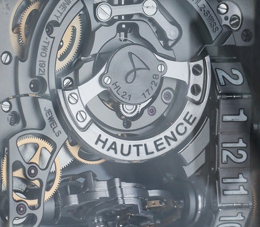 Hautlence HL2.1 腕表內部的機芯與外觀一樣復雜,由 552 個零件組成。考慮到這一切,令人印象深刻的是它擁有 45 小時的動力儲存。事實上,有兩個發條盒,一個用于為報時系統提供動力,另一個用于為小時軌道等移動復雜功能提供動力。后一種并發癥相當有趣。您會注意到時標位于坦克胎面風格的軌道上。它的移動速度不慢,但有點跳躍。基本上,當時間到了時,整個鏈條都會明顯移動,直到新的時間出現在表盤的窗口中。當這個胎面轉動時,它也會移動連接到平衡輪的齒輪軸。有了這個,你會得到陀飛輪式的效果,因為平衡輪并不總是在同一個位置。廣告留言廣告信息結束