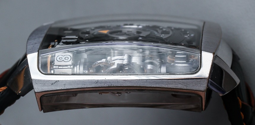 請原諒我最近在墨西哥城的 SIAR 2014 參觀該品牌時在手腕上拍攝的Hautlence個人 HL2.1 原型的破舊表殼。這些手表非常稀有,甚至品牌也只有一兩個原型可供炫耀,每只HL2.0 系列手表都是限量版,每只 28 塊。2014 年的新品是帶有 Hautlence HL2.5 的下一款 HL2,我相信這是該系列中的第五款車型,可以追溯到 2010 年或 2011 年。