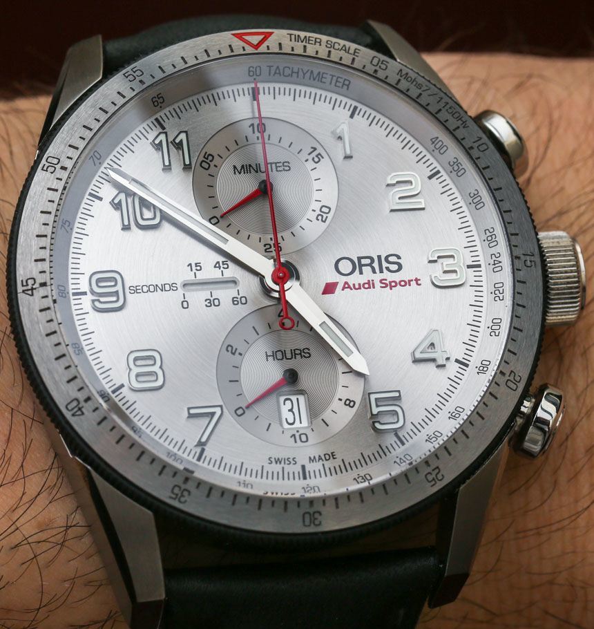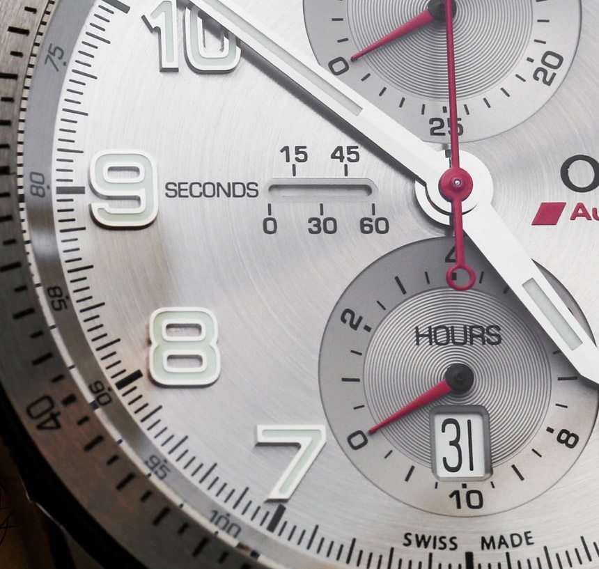 2014 年最漂亮的賽車主題手表之一是Oris的限量版計時碼表,旨在慶祝他們與奧迪運(yùn)動賽車(奧迪賽車隊的分支機(jī)構(gòu))的合作關(guān)系。被稱為 Oris Audi Sport 限量版 ref。01 774 7661 7481,這款手表是更大的 Oris Artix 賽車計時碼表系列的重要組成部分,但具有非常吸引人的飾面和材料組合。它也是我所知道的為數(shù)不多的具有非常清晰的銀色表盤的手表之一——在我看來,這立即使它變得獨(dú)特和吸引人。
