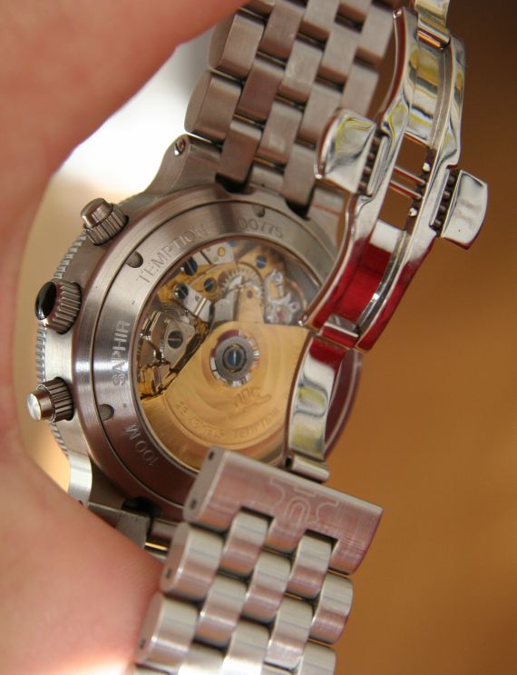 Valjoux 7751 基于非常受歡迎的 Valjoux 7750 計時碼表。7751 增加了多項復雜功能,包括:月相、同步 24 小時時間指示器、帶月份、星期和日期的完整日歷。7751 當然是自動的,而 Temption 提供了一個可愛的透明底蓋。我的版本有黃金或鍍金版本的機芯,但我見過只有鋼的機芯??偟膩碚f,機芯不是這篇評論的主題,但我對它很滿意。很多時候,機芯的復雜性需要一些古怪的操作。例如,校正日期的系統可以更直觀,但這是機芯的問題,而不是手表的問題。