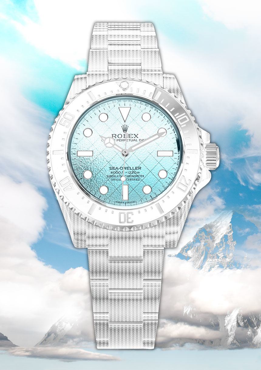 如果勞力士海使型 4000 是一款超輕型時計會怎么樣?這對于受空氣和云啟發(fā)的東西來說是有意義的。勞力士 Sea Dweller 4000 Air 概念將是“一款輕巧的彩色手表。高科技材料將使它極輕但幾乎堅不可摧。Sea-Dweller Air 給佩戴者一種錯覺,你最好把它戴在手腕上,否則它會像氣球一樣飄走?!?/p>