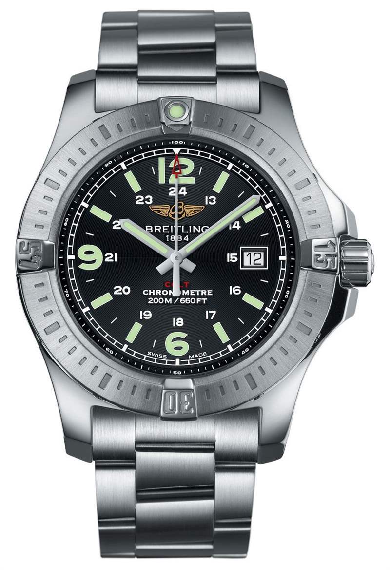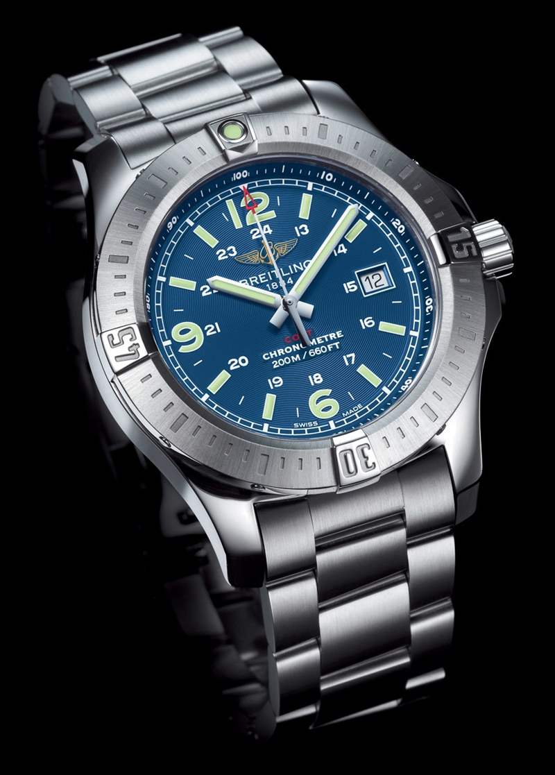 百年靈在金屬上混合搭配拋光和拉絲表面,但按照他們的標(biāo)準(zhǔn),柯爾特表殼本身的大部分都是拋光鋼。表盤上方是圓頂形鍍增透膜(雙面)藍(lán)寶石水晶表鏡,表殼防水深度達(dá) 200 米——這對大多數(shù)消費(fèi)者來說可能已經(jīng)足夠了。表盤功能簡單,足以稱得上是百年靈家族的一員,但它們并不過分凌亂。百年靈 Colt 手表的表盤具有很好的對比度,指針和時標(biāo)上有很多夜光,這讓它們看起來像是非常實(shí)用的工具型手表。