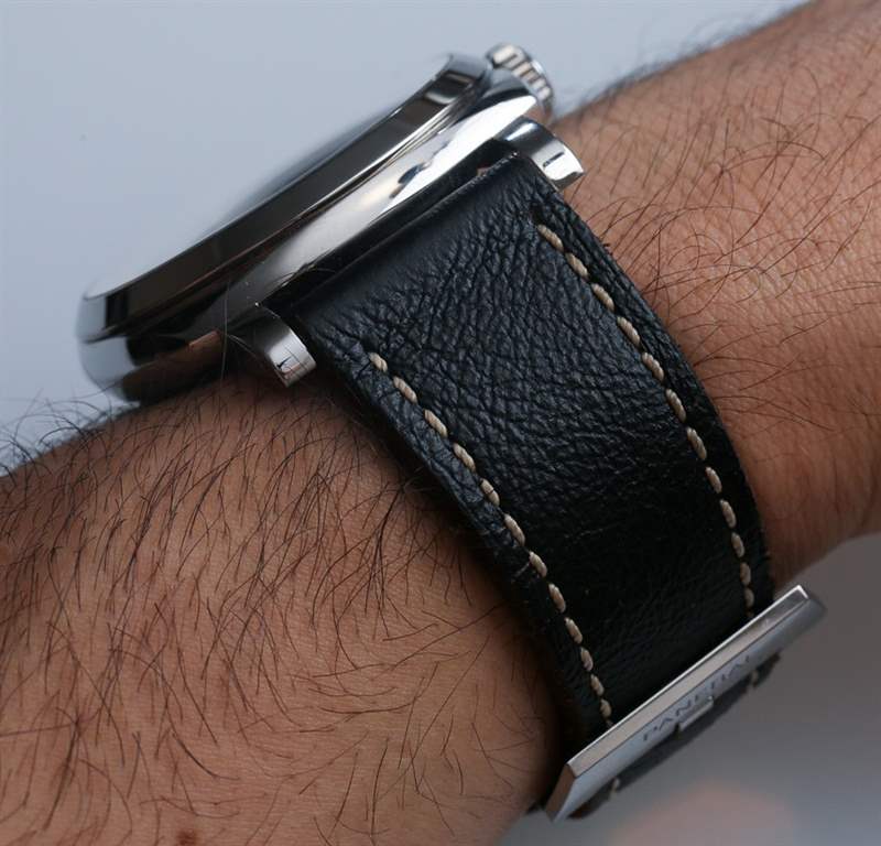 請注意,鑒于大型圓頂藍寶石水晶,拍攝大多數沛納海手表非常困難。即使沛納海涂上了抗反射涂層,也會有很多眩光。鑒于簡單的表盤和突出的指針和時標,它不會嚴重影響易讀性,但它是沛納海所有權體驗的一部分。