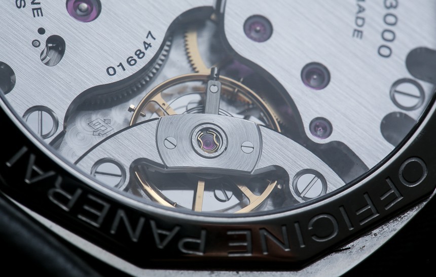 P.3000 是一款簡單而優雅的機芯。表橋設計極具吸引力,工業設計與優雅的結合顯而易見,很難像沛納海那樣精通。P.3000 以 21,600 bph (3Hz) 的頻率運行,具有 72 小時的動力儲存。在功能上,機芯提供帶小秒盤的時間和日期。當您將表冠拉出一個位置時,時針會在一小時內移動一圈,這對于旅行以及如何設置日期很有用。盡管與傳統的快速設置日期相比,它確實使調整日期有點麻煩。