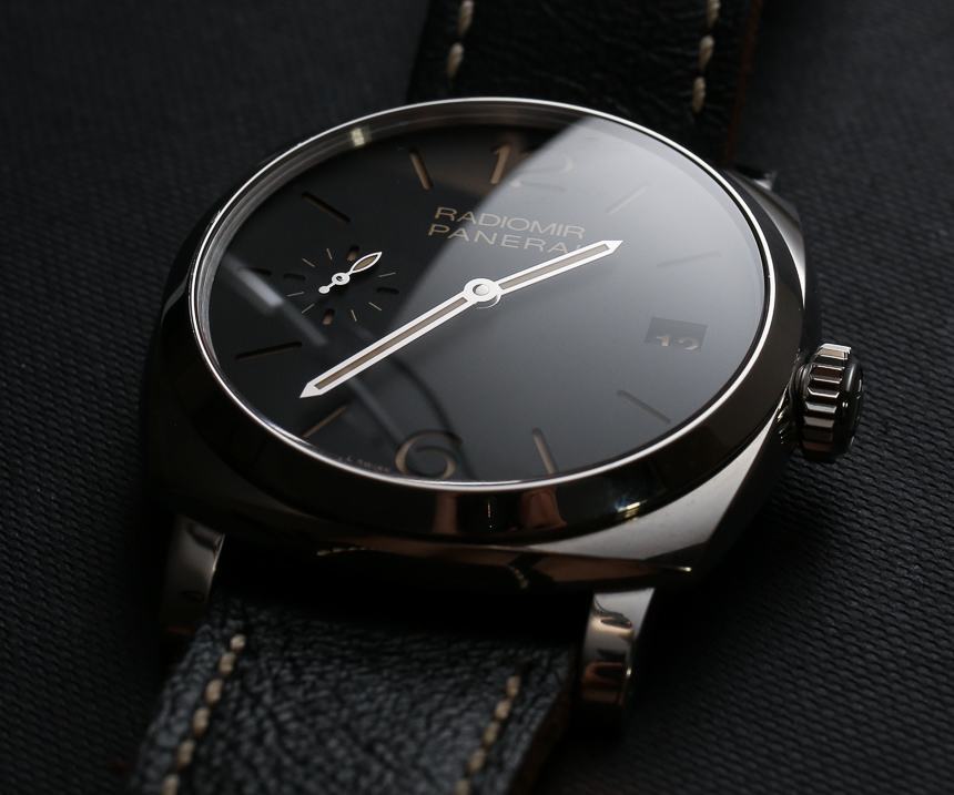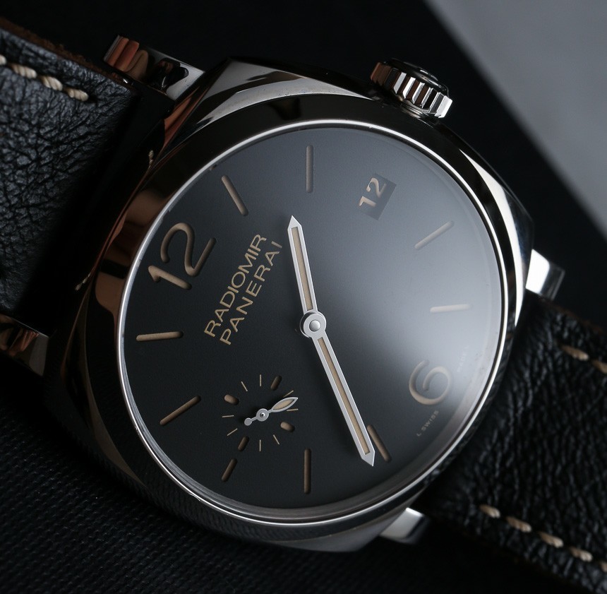 我通常不討論表冠,但在這種情況下我要提一下,因為沛納海做得特別好。擰開表冠,你會發現把柄很粗,摸起來很穩。這很難用語言來解釋,但我只想說我對皇冠感到驚喜。表殼防水深度達 100 米,表盤上方是藍寶石水晶。