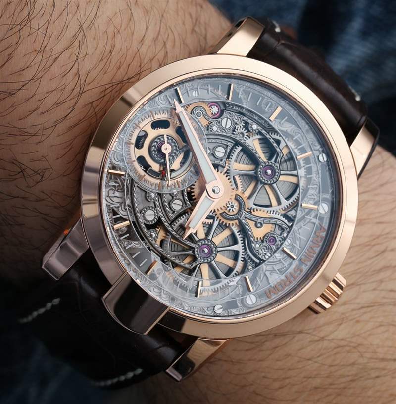 事實(shí)證明,我所有的秘密關(guān)注只會(huì)讓事情變得更糟。我希望在私下看了 One Week Skeleton 足夠長的時(shí)間后,我會(huì)忘記它,并認(rèn)為它只是另一種暫時(shí)的手表迷戀。然而這一次我認(rèn)為鐘表的欲望太深了。Armin Strom 采用 43.40 毫米寬的表殼,由拋光和拉絲 18k 玫瑰金制成,包括他們慣用的“表殼標(biāo)簽”,用于簽名。沒錯(cuò),他們會(huì)將您的姓名首字母寫在表殼上,以表明您對(duì)他們手表的所有權(quán)。我多么想要一周骨架上的“AA”!廣告留言廣告信息結(jié)束