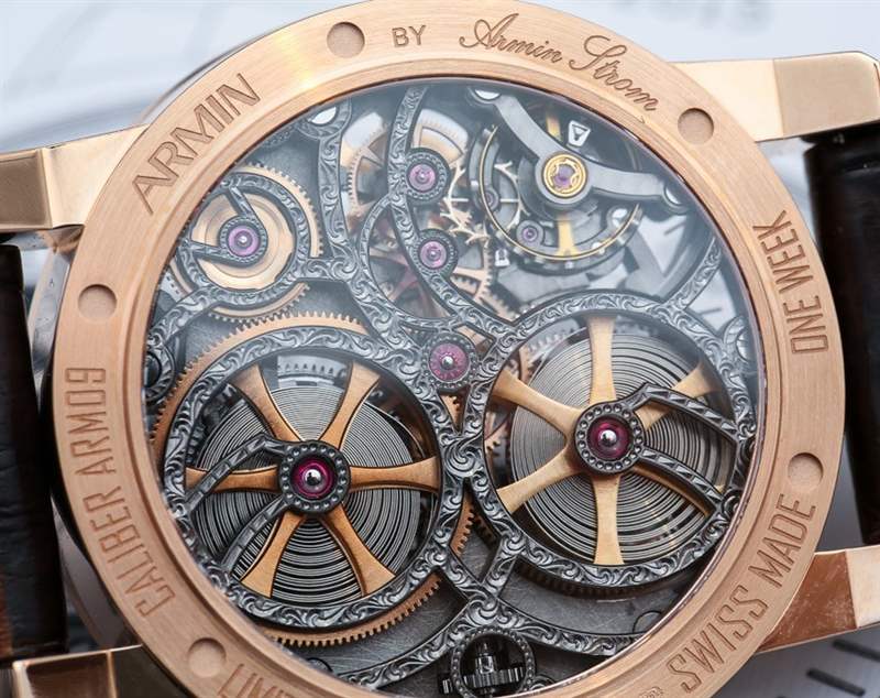 對(duì)于 One Week Skeleton,Armin Strom 對(duì) ARM09 進(jìn)行了全面雕刻和裝飾,將其變成了 ARM09-S。這個(gè)過程大約需要 10 天,而且他們必須為每個(gè)機(jī)芯單獨(dú)完成,因?yàn)榈窨踢^程是手工完成的。只有 50 個(gè),這意味著 One Week Skeleton 不僅是大量工作的產(chǎn)物,而且也是一個(gè)罕見的工作。我后來才知道,它甚至有一個(gè)公道的價(jià)格。學(xué)習(xí)所有這些實(shí)在是太多了,不能不考慮 One Week Skeleton 手表對(duì)我來說是合適的手表。所以我開始跟蹤它回家并在網(wǎng)上跟蹤它。