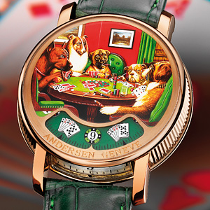 眾所周知,安德森·日內(nèi)瓦可以根據(jù)畫作所在的部分完全定制這款手表。對圖像有更好的想法?他們可以為你把它放在那里。就問吧。還有哪些動物在玩撲克?