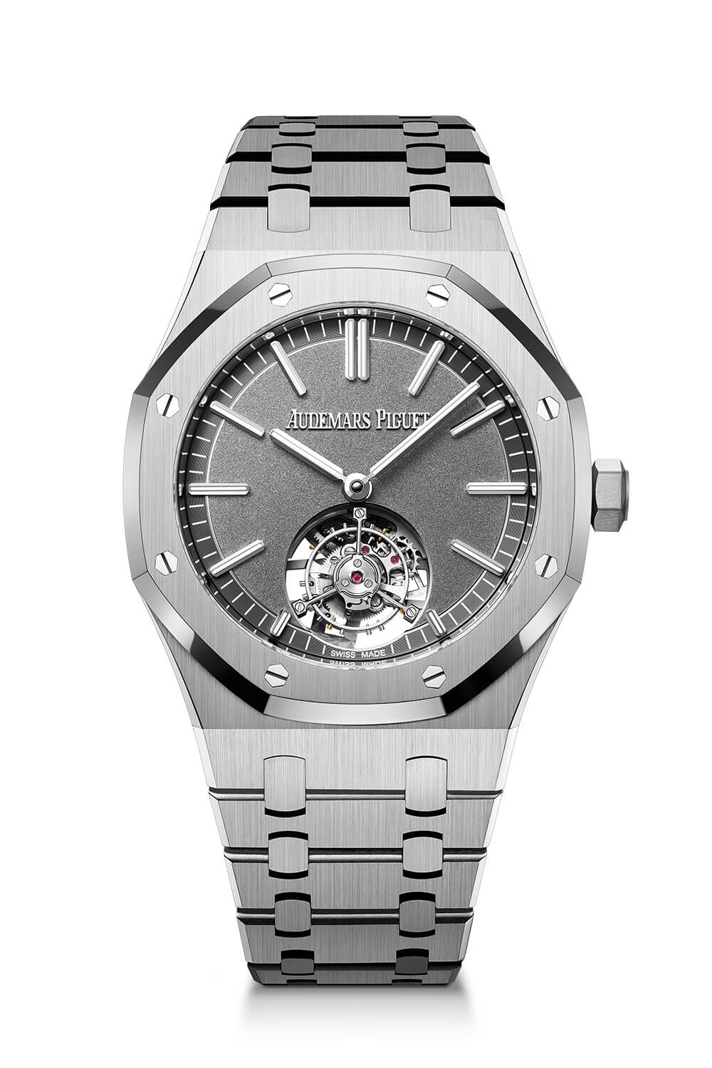 愛彼對(duì)不起眼的陀飛輪并不陌生。他們的皇家橡樹 (Royal Oak) 承載了許多旋轉(zhuǎn)并發(fā)癥,包括籠子,第一次出現(xiàn)在 90 年代后期。然而,這是第一次——至少在他們的概念作品和 Code 11.59 之外——70 年代的圖標(biāo)比以往任何時(shí)候都飛得更高,至少在陀飛輪意義上。這就是愛彼皇家橡樹自動(dòng)上鏈飛行陀飛輪。