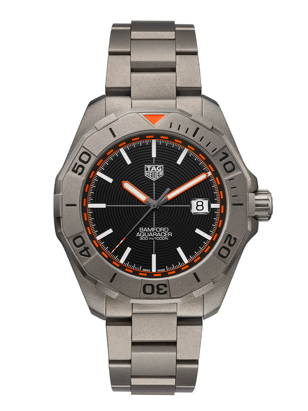 盡管這可能只是我最喜歡的 Aquaracer 版本,但這是無法回避的事實。磨砂鈦金屬完美搭配刻面表殼,黑色、白色和橙色表盤組合與海岸警衛隊相得益彰。
