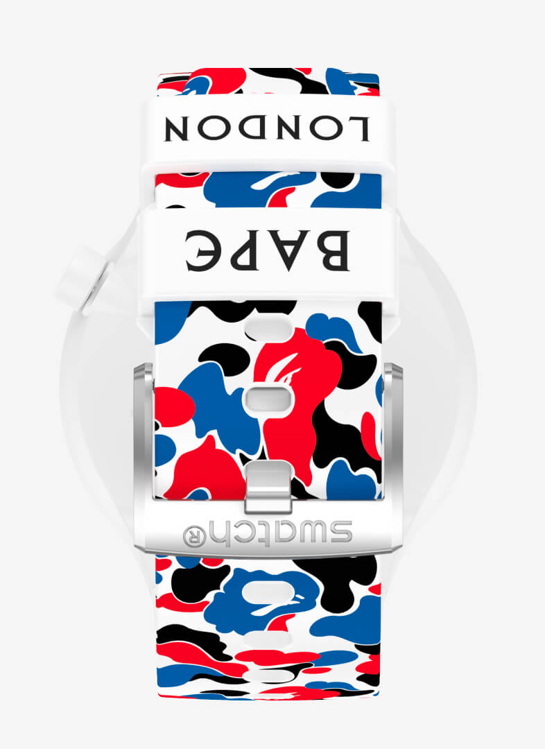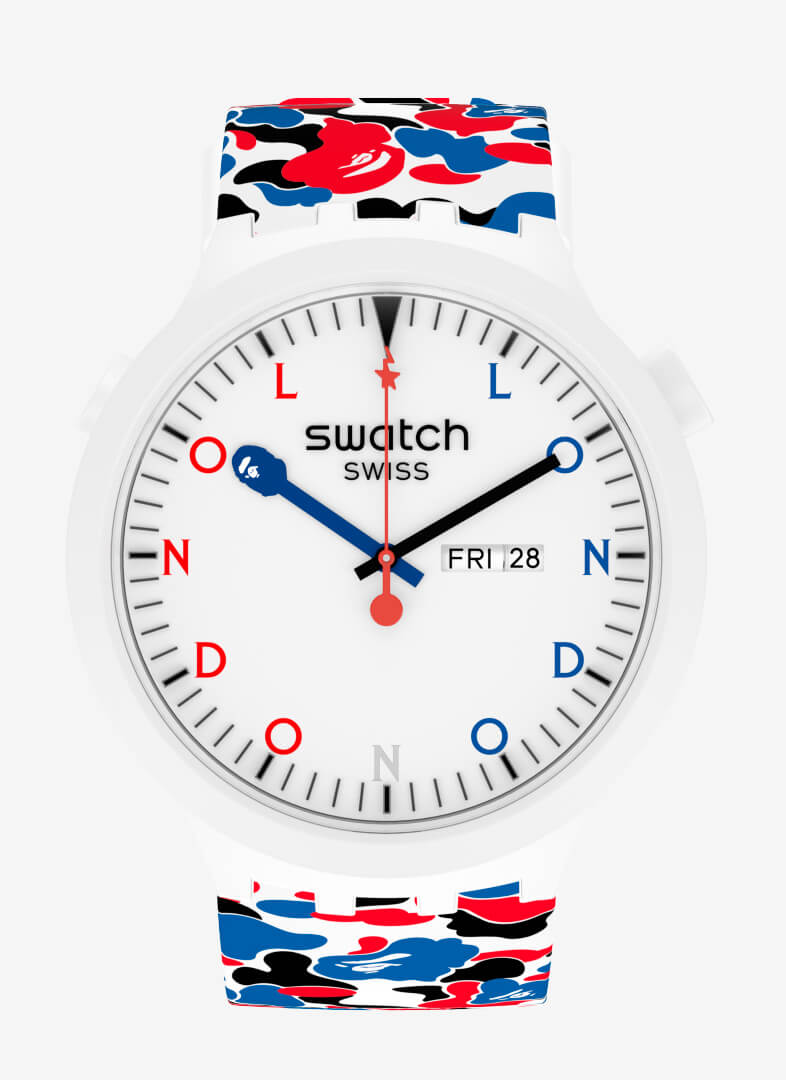 朋克、mods、grime,倫敦一直以其前衛(wèi)、反文化的氛圍而自豪。誠然,日本可能是街頭服飾的現(xiàn)代之都,但我們自己的首都一直是街頭服飾之都。迷彩品牌 BAPE 和平易近人的制表商 Swatch 之間的最新合作具有明顯的倫敦傾向:Swatch X BAPE Con??duit Street 也就不足為奇了。