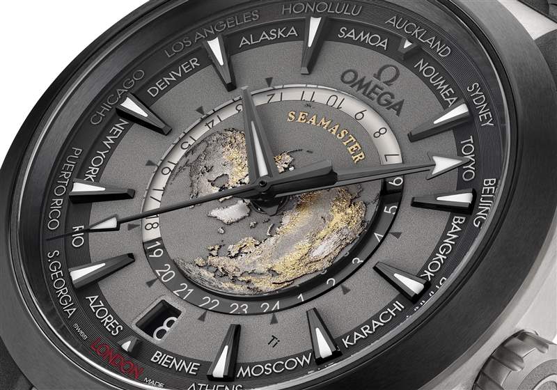 作為環(huán)球旅行的必備工具,歐米茄海馬系列 AQUA TERRA 150米腕表43毫米至臻天文臺(tái)GMT世界時(shí)款是最漂亮,也很有趣的選擇。這款43毫米的表殼采用經(jīng)過拉絲工藝處理的2級(jí)鈦金屬打造,通過拉絲鈦金屬鏈節(jié)與表殼連為一體,并配有拉絲鈦金屬折疊表扣。黑色和灰色表盤,搭配經(jīng)過拉絲工藝處理的黑色陶瓷表圈。表盤中央呈現(xiàn)從北極俯瞰的地球影像,以激光蝕技術(shù)雕刻出陸地輪廓與色彩。內(nèi)表盤外側(cè)設(shè)有24小時(shí)刻度環(huán),指示世界各地的時(shí)間,同時(shí)還顯示夜晚和白天。