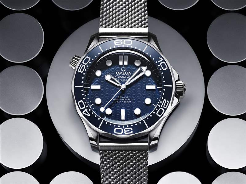 海馬系列300米潛水表42毫米至臻天文臺表詹姆斯·邦德60周年紀(jì)念腕表鋼殼鋼鏈款。同樣為了慶祝007系列電影上映60周年而推出,表殼尺寸為42毫米,采用不銹鋼材質(zhì)打造,藍(lán)色表盤以草酸陽極氧化鋁制成,飾以激光鐫刻波紋圖案,靈感源自詹姆斯·邦德在1995年上映的電影《黃金眼》(Golden Eye)中所佩戴的海馬系列300米潛水表。潛水刻度上的傳統(tǒng)倒三角標(biāo)志則以數(shù)字「60」取代,別具紀(jì)念意義。該表搭配經(jīng)過拉絲處理的精鋼網(wǎng)狀表鏈,為其金屬外觀增添紋理質(zhì)感,呼應(yīng)邦德在電影《無暇赴死》(No Time To Die)中佩戴的鈦金屬表所搭配的優(yōu)雅網(wǎng)狀表鏈,比較少見而別致。
