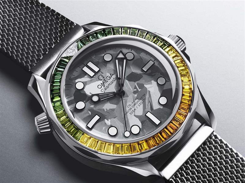 對于007詹姆斯·邦德「專屬」海馬300表款著迷的鑒賞家與收藏家大有人在,如今他們有了最新的選擇:為了慶祝007系列電影上映60周年,歐米茄新推出了奢華旗艦級產(chǎn)品海馬系列300米潛水表42毫米至臻天文臺表詹姆斯·邦德60周年紀(jì)念表 Canopus 18K金款。該表采用 Canopus 18K金打造,搭配天然灰色硅質(zhì)表盤,呼應(yīng)特工007藏身加勒比海時的沙灘。表盤搭配單向旋轉(zhuǎn)表圈,其上鑲嵌著不同色澤的鉆石,使得表圈整體呈現(xiàn)出由暗綠色至黃色的漸變效果,十分引人注目。藍(lán)寶石玻璃表背飾以微結(jié)構(gòu)金屬噴鍍技術(shù)制成的圖案,再現(xiàn)007系列電影的經(jīng)典開場——邦德剪影和螺旋形槍膛線。這種「摩爾」紋的動態(tài)效果與「棒棒糖」型中央秒針同步運(yùn)行,循環(huán)往復(fù),特別具有趣味性。