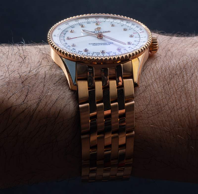 最新款百年靈 Navitimer 36 腕表搭載經 COSC 認證的百年靈 Calibre 17 自動機芯,動力儲存約 38 小時。最后,這些手表配備弧形藍寶石水晶保護表盤,旋入式底蓋保護機芯,防水深度達 30 米。這并不是我們第一次看到小型自動計時 Navitimer 版本。Sean Lorentzen 曾在 2020 年撰寫過有關Navitimer Automatic 35發布的文章。