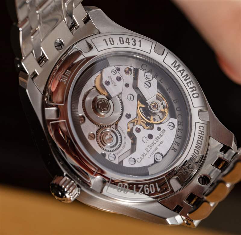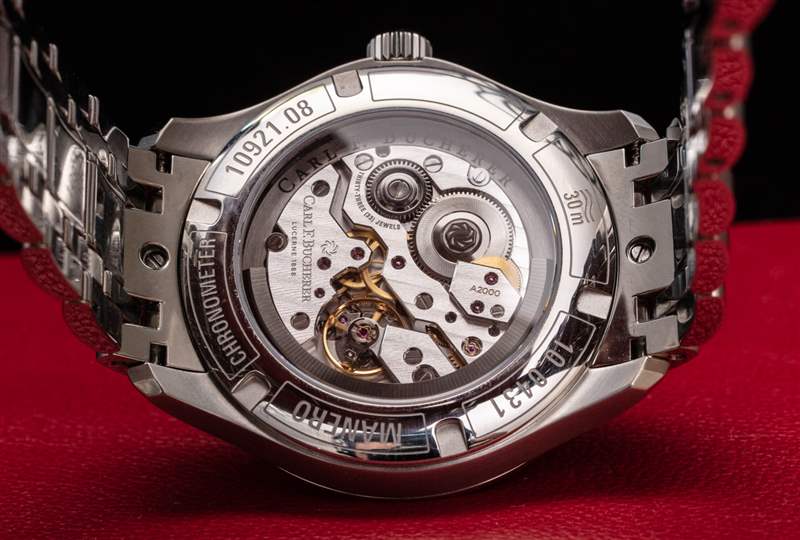 精鋼表殼經過精美拋光處理,質量上乘,適合這個非入門級價位的時計。Carl F. Bucherer 生產較便宜的正裝手表,但他們沒有內部機芯,就像這里的情況一樣。機芯本身就是 Carl F. Bucherer CFB A2050,這是 A2000 機芯系列的特殊表盤。A2000 是繼創(chuàng)新型 A1000 機芯之后的第二代機芯,A1000 在十多年前作為第一款采用外圍自動轉子的現代機芯問世。廣告訊息廣告信息結束