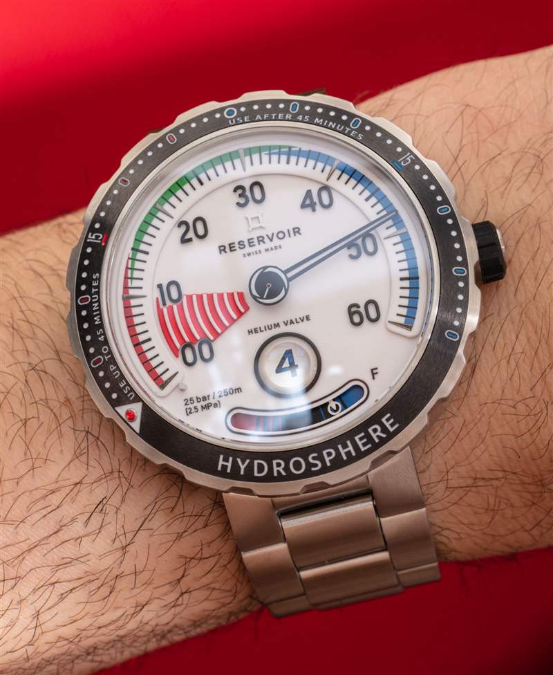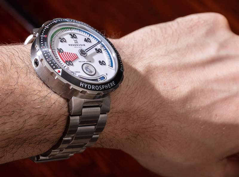 Reservoir 生產了幾個版本的 Hydrosphere 時計,其表盤顏色和表殼材料各不相同。我特別喜歡 Hydrosphere Air Gauge,因為正如產品名稱所暗示的那樣,表盤很容易讓人聯想到模擬空氣壓力計。這種特殊的 SCUBA 潛水儀器的一個有趣的事情是,大多數 BCD 裝置(裝有空氣罐的背心潛水員服裝)都有一個看起來幾乎與手表相同的氣壓計。這意味著今天大多數休閑潛水員都使用過這樣的氣壓計并通過視覺識別它們。為什么這很重要?因為 Reservoir Hydrosphere Air Gauge 是當今僅有的在視覺上與當今潛水設備相匹配的豪華潛水表之一。這意味著手表表盤不僅對手表愛好者來說既相關又熟悉,廣告訊息廣告信息結束