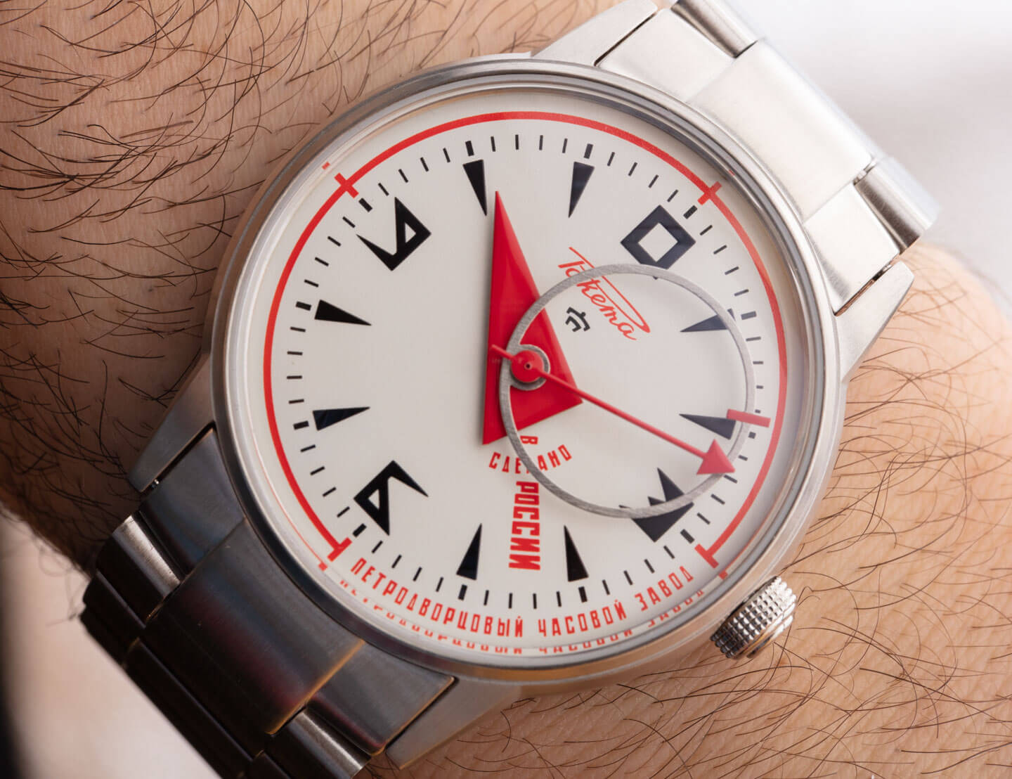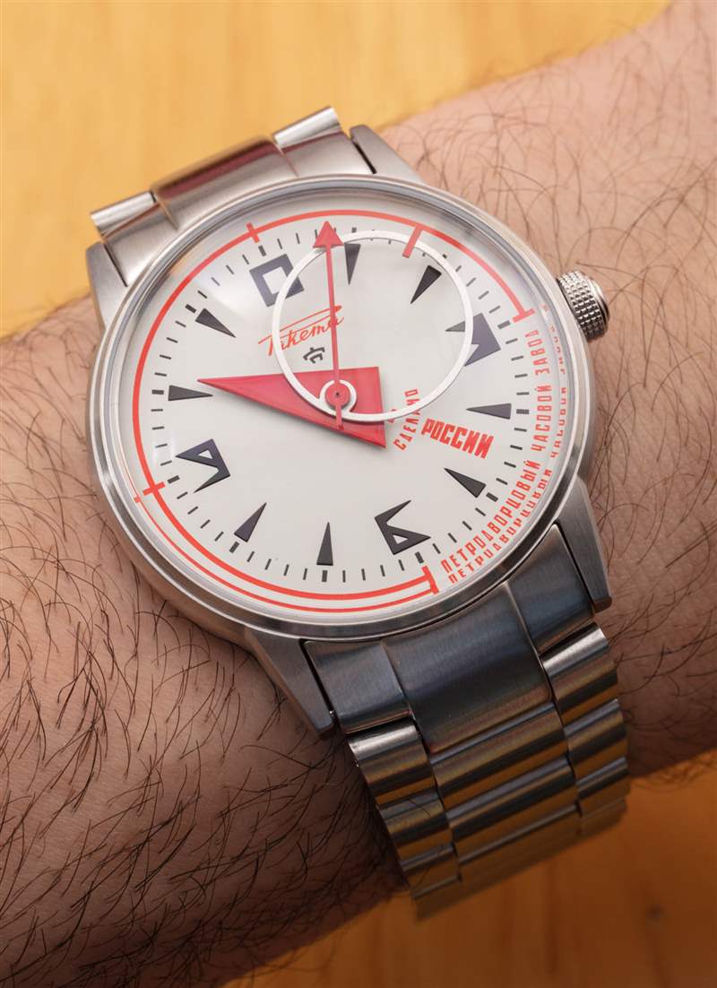 Raketa Avant-Garde 0240 配有配套的拉絲鋼表鏈,但 Raketa 還提供黑色皮革表帶上的前衛 0239 或紅色鴕鳥色表帶上的前衛 0226。表帶上的手表(相對于鋼表鏈)的價格要低 150 歐元。我最欣賞 Avant-Garde 的一方面是表盤設計,另一方面是因為表盤設計并不僅僅讓手表變得有趣。表殼、指針和機芯都為這款俄羅斯制造的時計增添了藝術感和情感趣味。表盤非常適合您,康定斯基風格的數字既時尚又易于閱讀。當然,前衛并不適合所有人,但顧名思義,它不應該如此。很高興看到制表師的這種個性和獨創性,在 Raketa 的例子中,品牌內部有很多歷史和有趣的故事,使其手表對收藏家來說更加值得注意。