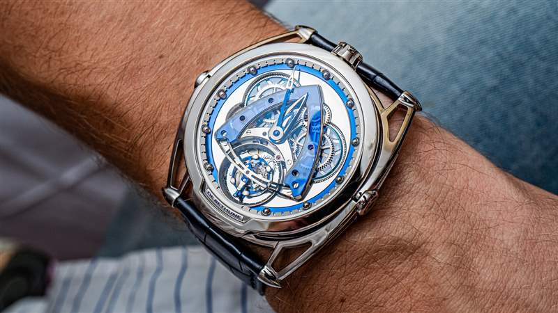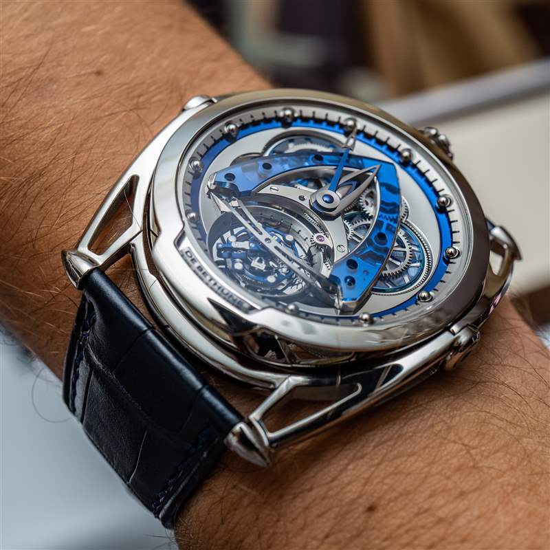 當(dāng)我談到“不在乎”時,我的意思是做一些事情,例如將“鋼”放在手表的標(biāo)題中,而鋼在手表的整體金屬或材料構(gòu)成中所占的比例相對較小。或者只是在新聞稿中回避重要的小細(xì)節(jié),例如詳細(xì)說明手表有多大(它是 43 毫米寬和 9.8 毫米厚)。我很確定 De Bethune 不會在意手表的尺寸。他們制作適合自己運(yùn)動的表殼,就 DB28 而言,它如此知名的一個原因是有助于其環(huán)繞包裹的鉸接凸耳。這種“舒適表耳”系統(tǒng)實(shí)際上是為 DB28 Steel Wheels Sapphire Tourbillon 重新改進(jìn)的,表明這與 De Bethune 十年前首次亮相的 DB28 表殼不同。廣告訊息廣告信息結(jié)束