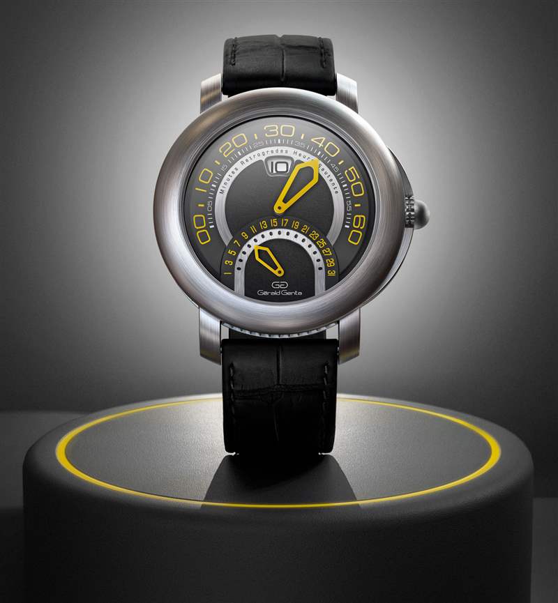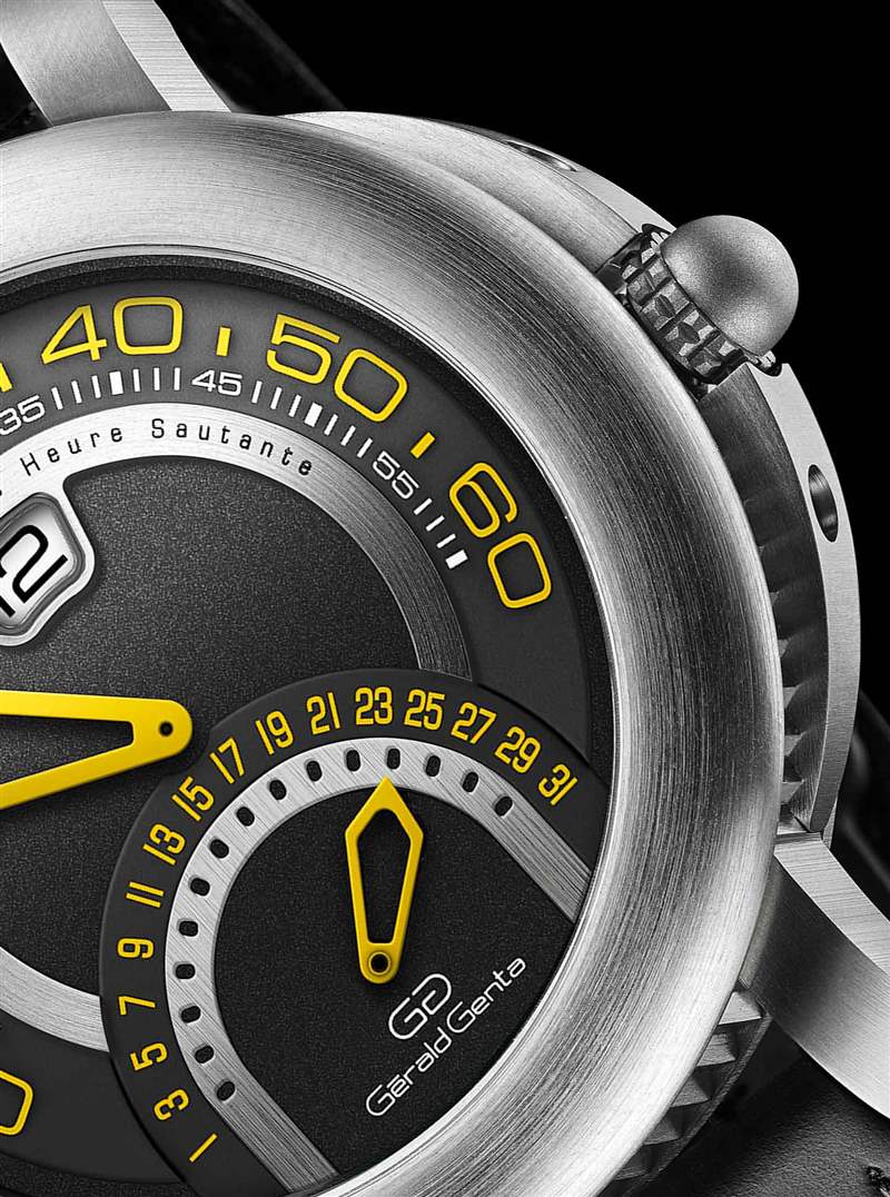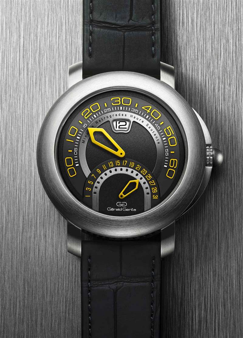 Arena手表一直很有趣,這款運動型鈦金屬搭配黑色和黃色(我碰巧非常欣賞的色調),搭配啞光黑色鱷魚皮表帶。表盤非常讓人想起以前的 Bi-Retro 手表,但進行了一些視覺調整以保持新鮮感。雖然該設計并非由 Gerald Genta 本人設計,但您可以很容易地發現這種略微新的外觀采用了許多高度特殊的設計 DNA。我也碰巧欣賞了新的 Gerald Genta 標志。它有一種 20 世紀后期的未來主義色彩,我認為它忠實地代表了 Genta 先生所珍視的價值觀和美學。