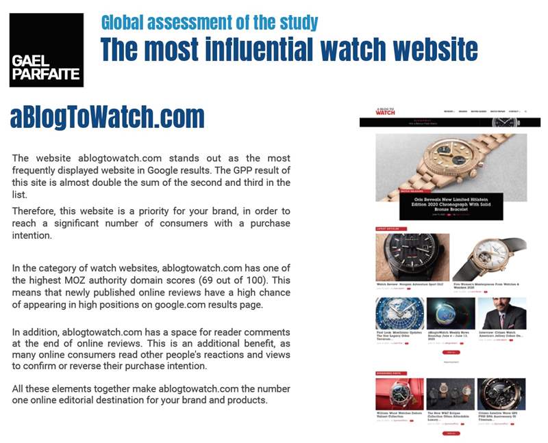 既然我已經(jīng)對我們?nèi)狈⑴c這個過程保持透明,我可以說 Parfaite 先生的報告得出的結(jié)論是,aBlogtoWatch.com 是手表消費者決策過程中最具影響力的網(wǎng)站。為此,我只能感謝 aBlogtoWatch 團(tuán)隊,以及更大的腕表愛好者和買家社區(qū),他們都遵循并相信我們的核心使命是成為熱愛和購買鐘表的人們值得信賴的資源。以下是我與 Gael Parfaite 關(guān)于報告的對話。可通過本文末尾的鏈接獲得報告完整 PDF 的鏈接。廣告訊息廣告信息結(jié)束