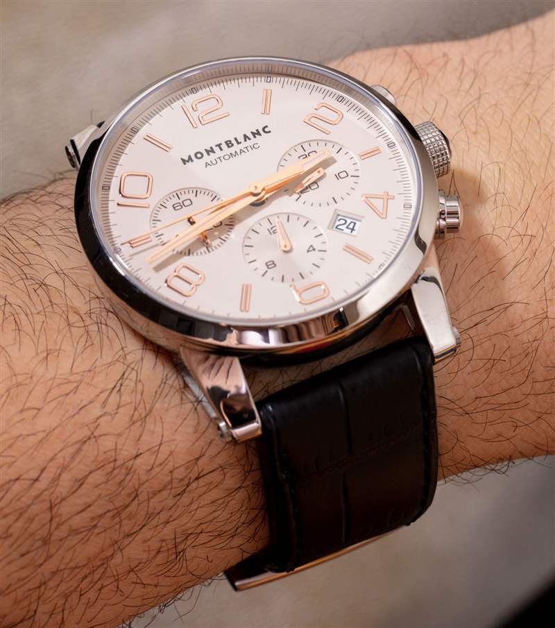 萬(wàn)寶龍生產(chǎn)了這個(gè)特殊的時(shí)光行者計(jì)時(shí)表模型系列,有幾個(gè)表盤版本,但在這一代時(shí)光行者表殼退役之前,萬(wàn)寶龍將其呈現(xiàn)為多種形式和不同的機(jī)芯。盡管 Timewalker 至少有三個(gè)不同的計(jì)時(shí)碼表版本,但我發(fā)現(xiàn)這種帶有瑞士制造 ETA Valjoux 7753 的原創(chuàng)計(jì)時(shí)碼表是最令人滿意的。參考 101549 有一個(gè)銀色表盤,玫瑰金色指針和時(shí)標(biāo)。萬(wàn)寶龍還生產(chǎn)了一款全銀表盤,配有一條我非常喜歡的棕色表帶。我認(rèn)為黑色表盤也是可用的。萬(wàn)寶龍甚至在獨(dú)特的金屬表鏈上提供了一個(gè)有趣的版本,帶有鏤空鏈節(jié)和黑色陶瓷中心鏈節(jié)。