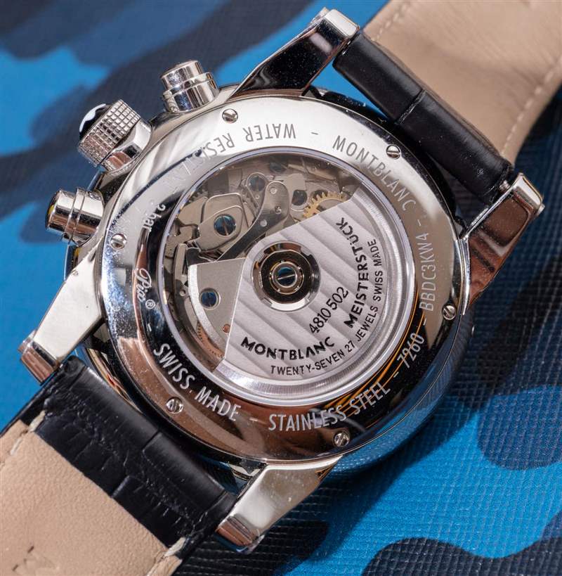 萬(wàn)寶龍將手表內(nèi)部的 ETA Valjoux 7753 自動(dòng)機(jī)芯稱為 MB 25.02 機(jī)芯。7753 是 7750 的不同版本,計(jì)時(shí)碼表子表盤的方向?yàn)椤皌ricompax”陣列。它還在表殼的 10 點(diǎn)鐘位置設(shè)有一個(gè)嵌入式日期校正按鈕。機(jī)芯以每小時(shí) 28,800 次的速度運(yùn)轉(zhuǎn),動(dòng)力儲(chǔ)存約 46 小時(shí)。萬(wàn)寶龍選擇了該機(jī)芯的中等裝飾版本,其中包括自動(dòng)轉(zhuǎn)子上的日內(nèi)瓦條紋拋光貼花,以及除使用藍(lán)鋼螺釘外的其他未完成的機(jī)芯。
