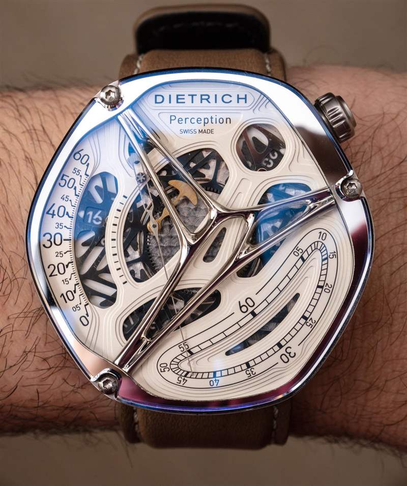當 Emmanuel Dietrich 設計 Perception 時,他的目標不僅是探索他對“生物形態”工業設計的興趣,而且更具體地玩弄時間的顯示方式。值得注意的是,手表設計領域的最高使命之一是創造一種新穎的,或者至少是有用的指示時間的方式。標準的兩個或三個中央指針表盤是行業規范,一些特別受人尊敬的設計師喜歡避開它,以求與眾不同,最好是美觀。Perception 本身并沒有開辟新天地,但它確實在一個完整的包中包含了兩種不常見的指示時間的方式,最終既“令人驚嘆又美妙”又“狂野而怪異”。廣告訊息廣告信息結束