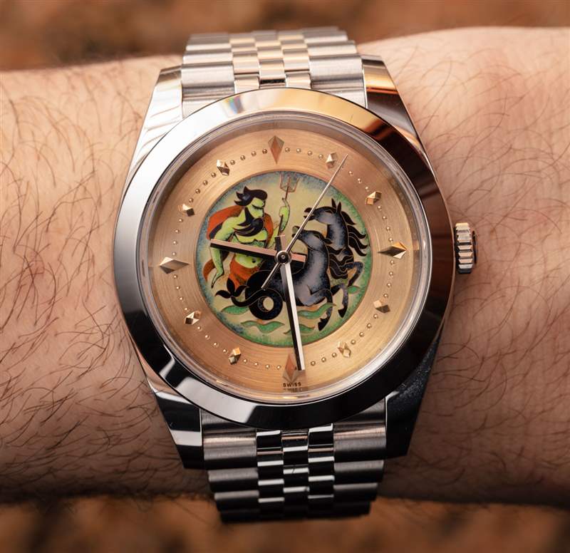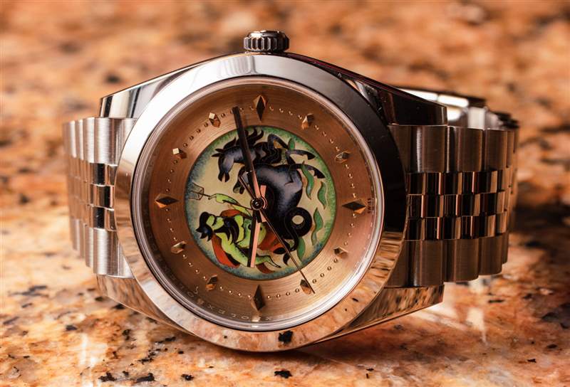 在手腕上,我覺得這些很漂亮,但建議如果你想搭配這個金色表盤底座,那么選擇搭配金色指針的 Datejust 41。你可以在這里看到我完整的 aBlogtoWatch 勞力士 Datejust 41 手表評論。藝術表盤是我喜歡的東西,因為我一直發現表盤是展示繪畫的絕佳機會。有些手表從字面上理解這一點,無論您喜歡哪種類型的藝術,我保證那里有適合您的手表表盤。您無需對勞力士或激發這種現代再創作靈感的特定復古景泰藍琺瑯表盤有親和力,即可享受景泰藍琺瑯所能提供的藝術美感。