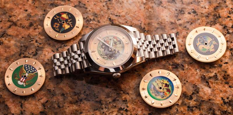 總部位于加拿大的Ematelier如今以合理的價格帶來了藝術琺瑯表盤的美感和技術。當我上次談到Ematelier 時,我正在回顧它的一款琺瑯彩繪限量版女士手表.?今天,我將討論一款男士產品,但 Ematelier 不能完全以限量版的形式出售,因為它是一種特殊的表盤,可以在售后市場安裝到現代勞力士 Datejust 41 手表上。以下是 Ematelier 創作的幾款表盤,每一款的靈感都來自于 1940 至 1960 年代為勞力士手表生產的原創景泰藍琺瑯表盤。具體來說,這些特殊的重新創建表盤慶祝勞力士“美洲地圖”參考 6085、海王星參考 8382、龍參考 8651、Caravelle 參考 6100 和美國鷹參考 6085。