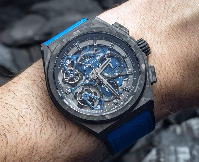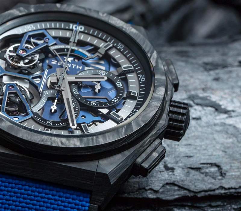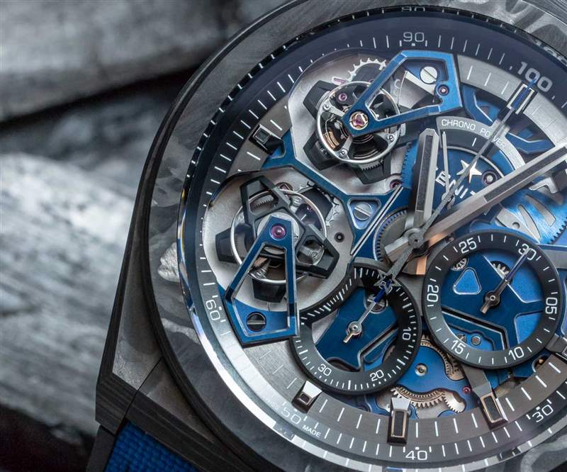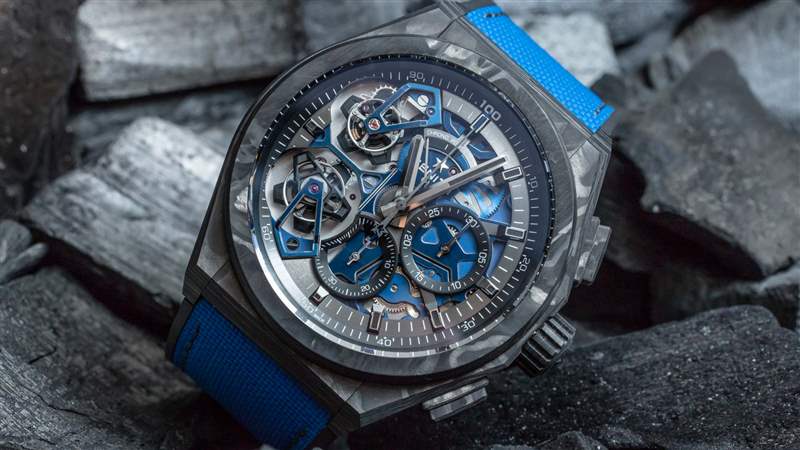 Defy 系列或多或少是真力時對大爆炸的回應(yīng),但添加了一點(diǎn)經(jīng)典融合。它現(xiàn)代而陽剛,但比宇舶表更微妙。這款特別的 Zenith Defy El Primero 雙陀飛輪腕表寬 46 毫米,表殼由碳制成——在超豪華時計(jì)領(lǐng)域是一種輕巧且非常時尚的材料。表殼防水深度達(dá) 100 米,表殼前后均配有藍(lán)寶石水晶。附在表帶上的是一條舒適的橡膠表帶,外部帶有藍(lán)色“cordura 織物效果”橡膠襯里。黑色展開式表扣由鈦制成。廣告訊息廣告信息結(jié)束