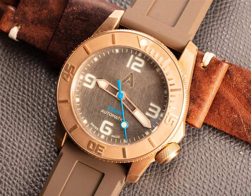 安德斯曼在青銅參考號 ANN0931、ANN0933 和這款 ANN0932(帶有“卡其”色表盤和藍色秒針)的三種表盤樣式中獲得了真正的藝術性。每款手表都有一個顏色略有不同的棕色表盤(以拉絲風格制成,安德斯曼說每個表盤都有獨特的外觀),以及不同顏色的秒針。雖然我很欣賞這些選擇,但我希望安德斯曼能幫助消費者決定選擇哪種選擇,增加一些個性或講故事。并不是說擁有選項不好,但我也知道讓消費者在三個好的、相似的選項中進行選擇會導致一定程度的選擇麻痹(在電子商務的背景下是一件壞事,像安德斯曼這樣的品牌專注于商業努力) .