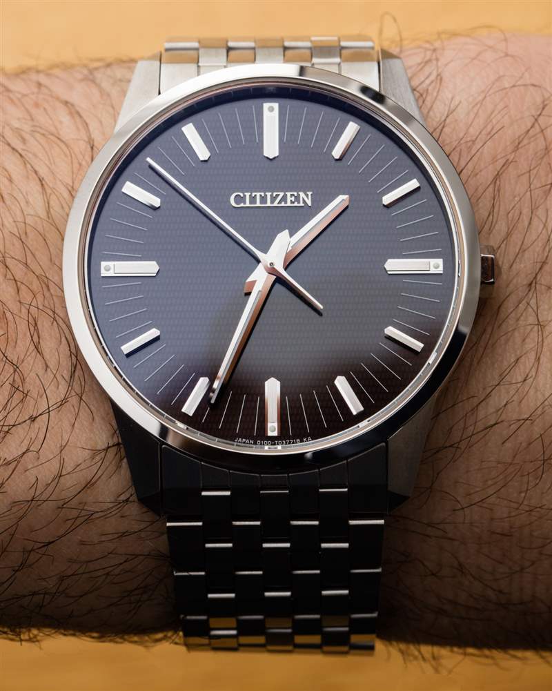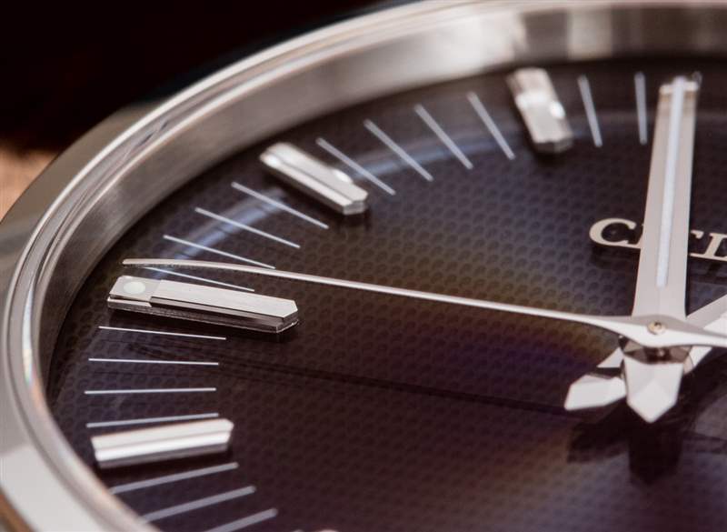 表盤設(shè)計本身很簡單,如果不是極簡的話。除了 6 點鐘位置的一些小文字外,Calibre 0100 表盤上唯一的文字是應(yīng)用的 Citizen 徽標(biāo)。大部分表盤專門用于鉆石拋光(也有拉絲部分)指針和匹配的時標(biāo)。它們超平坦的拋光表面反射光線,帶來奢華感,但不會模糊光線,這會妨礙易讀性。表盤也有薄的、印刷的第二個指標(biāo),幾乎沒有別的。然而,表盤并非沒有細(xì)節(jié)。