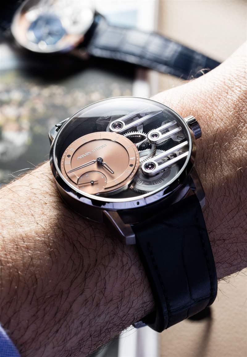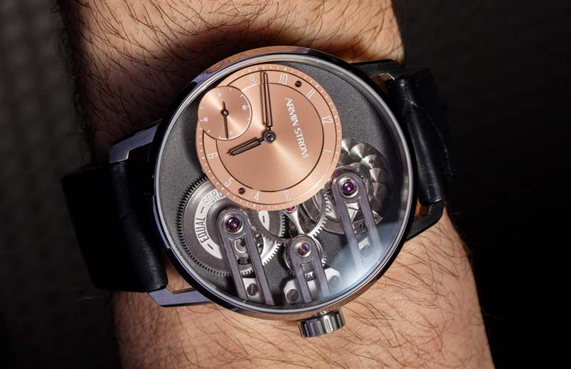 那么重力等力是什么意思呢?好吧,重力,也許是因為自動上鏈系統,但相等的力與 Armin Strom 與差的等時性作斗爭的努力直接相關。機械彈簧動力手表的問題在于,當主發條完全上弦或幾乎完全松開時,它會為齒輪系提供非常不同的動力量。從發條到機芯其余部分的恒定力是使手表在兩天、三天或機芯中包含的任何動力儲備期間顯示時間時保持可接受的準確度的關鍵部分。手表在 10 小時的動力儲備中保持準確沒有任何實際意義,而在休息期間,它非常不準確。為此原因,