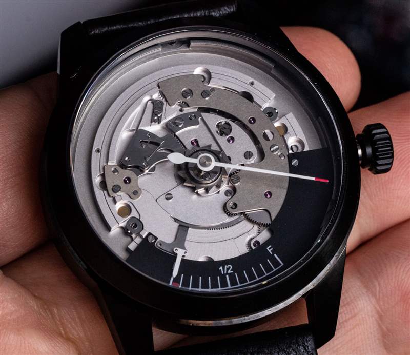 為了完成表盤指示系統,Reservoir 依賴于一個定制的工程設計的 124 組件機械模塊,該模塊安裝在瑞士制造的基礎 ETA 2824-2 自動機芯上。該模塊無疑為 2824 增加了一點厚度,并且它仍然以 4Hz 運行。動力儲存減少至 37 小時(從約 42 小時),可能是由于移動安裝在其上的模塊中的附加部件所需的動力增加。據我所知,目前所有的 Reservoir 手表都包含相同的機芯 + 模塊,該品牌的手表在幾個型號系列中表達信息的方式略有不同。Tiefenmesser 可以說是最考究的表款——盡管所有這些表款的靈感都來自于歷史悠久的儀表和儀器,而不是傳統的鐘表表盤。也就是說,傳統上來說