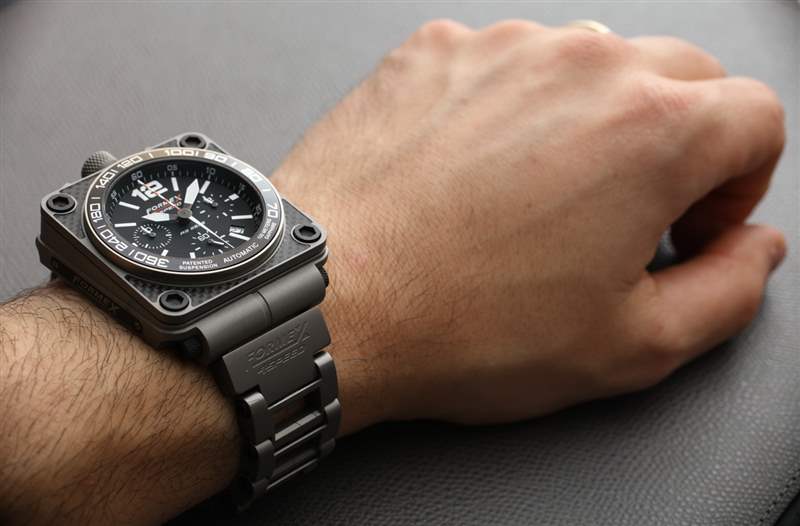 方形 4Speed 表殼與圓形版本相得益彰。我相信,當(dāng)時的 Formex 受到了 Bell & Ross BR01 的啟發(fā),它在 2004 年左右問世時非常受歡迎,并使帶有四個表圈螺絲和儀表式表盤的方形表殼流行起來。我實際上不記得 Formex 發(fā)布 4Speed RS 6525 的那一年,但我相信那是在 Bell & Ross BR01 Instrument 系列之后。Formex 并沒有復(fù)制手表本身,而是使用了很多設(shè)計代碼供自己使用——在我看來,效果很好。廣告訊息廣告信息結(jié)束