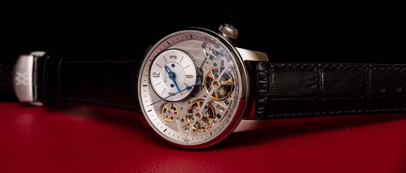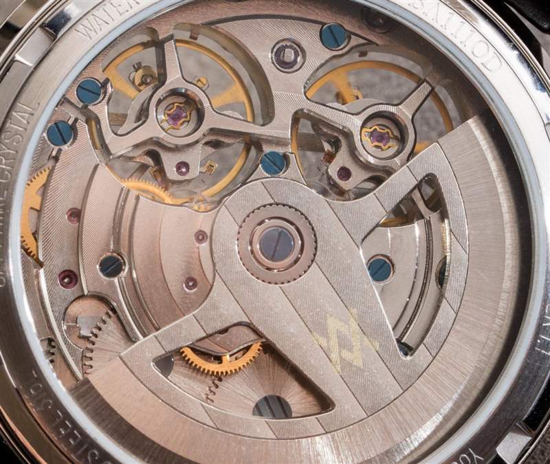 第 1.1 章的風(fēng)格介于寶璣和莫里斯·拉克魯瓦之間,完全是關(guān)于內(nèi)部基于雙擺輪的運動。中國制造的自動機芯實際上是物美價廉的——努力復(fù)制傳統(tǒng)的表面處理,而不是讓如此多的機芯部件公然未完成(就像一些廉價機械機芯的情況一樣)。表盤通過小表盤顯示小時和分鐘,而秒針則通過傳統(tǒng)的中央安裝秒針指示。對我來說,當(dāng)您考慮到由真正的差速系統(tǒng)連接的雙平衡輪的視圖時,這就像一個窮人的亞諾表。運動的準(zhǔn)確性如何?我不知道; 它不是一個計時器。但我不認為你需要每周重置一次以上的時間。