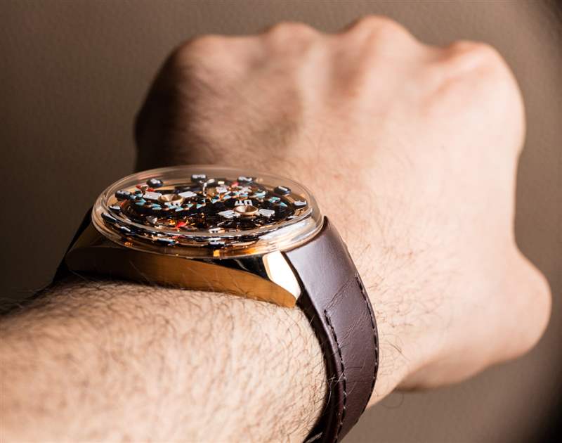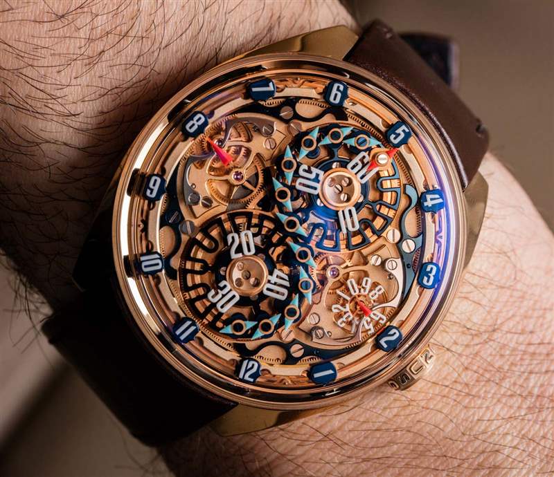 Genus 的 GNS 手表并不適合所有人——也不是他們想要的。該設(shè)計融合了經(jīng)典比例和超現(xiàn)代感,在表盤上不留任何想象空間,并展示更多不必要的機制。今天的這種鏤空表盤也充滿了讀取表盤上信息(在這種情況下只是時間)所需的指示器。就 Genus 而言,除了鏤空機芯外,我們還面臨著一種新的指示時間的方法。如果沒有一些指導(dǎo),很容易完全誤解撥號信息。Genus 佩戴者可能會為此感到高興,或者以其他方式觀看不熟悉 Genus 表盤的旁觀者,在看到它時難以閱讀時間。我想,這其中有一些罪惡的樂趣。廣告訊息廣告信息結(jié)束