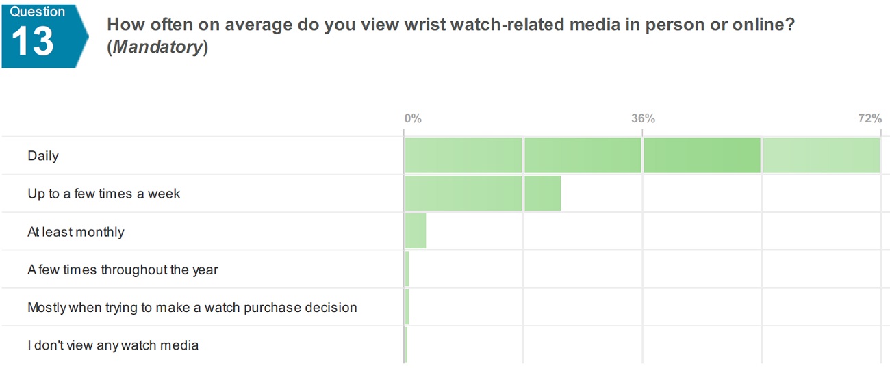 2019年10月和11月,aBlogtoWatch舉行了一次大型受眾調(diào)查,它旨在為許多問題提供答案。該調(diào)查的主要目的是收集有關(guān)手表愛好者消費(fèi)者情緒的學(xué)術(shù)研究數(shù)據(jù)。2,000 名 aBlogtoWatch 受眾成員提供的數(shù)據(jù)為手表品牌營銷工作未能有效針對可能的客戶群體的理論提供了實(shí)證依據(jù)。明確的數(shù)據(jù)表明,高達(dá) 80% 的手表愛好者沒有被手表品牌的廣告信息有效地接觸到。隨后,歷史上可能與非常重要的手表愛好者群體保持密切關(guān)系的品牌錯(cuò)過了與他們最重要的客戶群體的關(guān)系。雖然本文的目的不是討論該研究項(xiàng)目的全部發(fā)現(xiàn),但事實(shí)上,
