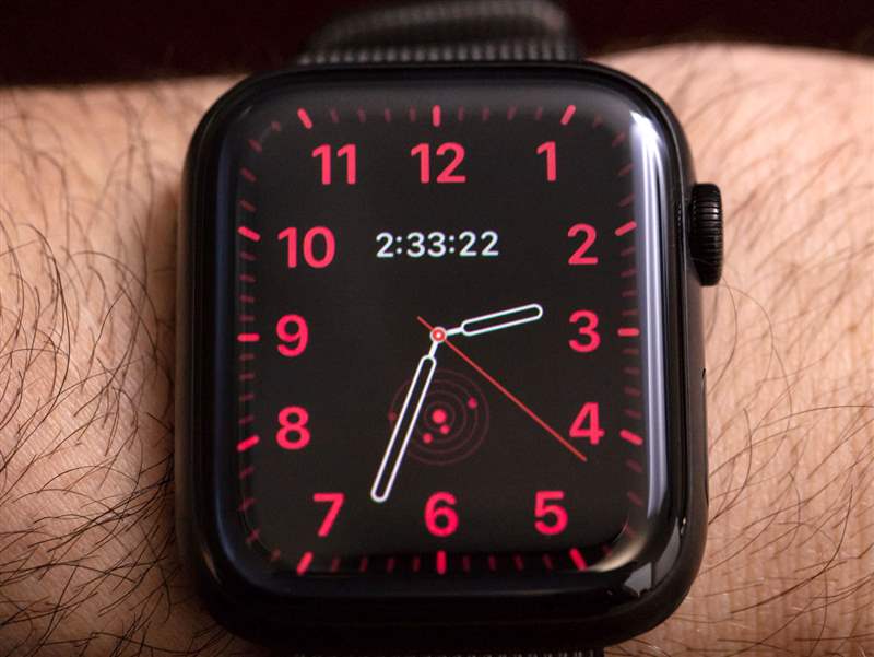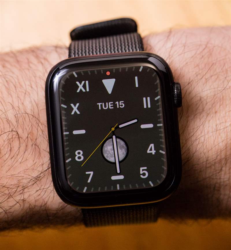 以攝影方式捕捉常亮屏幕是一項挑戰,因為我更喜歡在拍攝時計時使用閃光燈,而閃光燈發出的光會洗掉你在顯示屏上看到的東西。這是大多數智能手表的問題。我說這一切是為了解釋為什么沒有多少圖像可以讓您感知到 Apple Watch Series 5 常亮顯示屏的實際外觀。然而,Apple Watch 的流行確實意味著大多數消費者將開始看到其他人佩戴 Apple Watch Series 5 產品,讓您看到它在現實世界中的樣子。