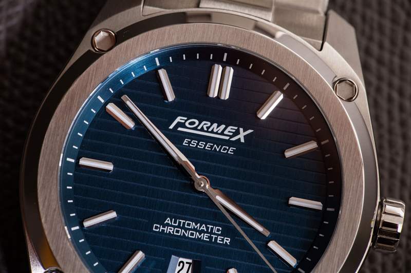 為了讓事情變得更復雜一點,Formex 為 Essence 提供了兩種運動“等級”,對應于不同的表盤樣式。例如,這是 COSC Chronometer 認證機芯表盤的藍色表盤,而非 COSC 機芯版本則采用稍微簡單的太陽紋藍色表盤。雖然我不完全確定為什么 Formex 提供帶有和不帶有 COSC 天文臺認證的 Essence(請注意,結構上相似的機芯)。這種做法在精品品牌領域并非沒有先例,但我確實認為它不必要地讓消費者停下來,不得不做出尷尬的選擇。