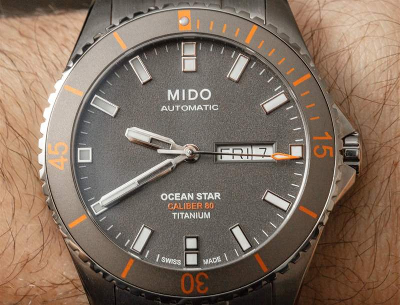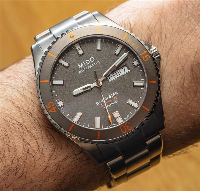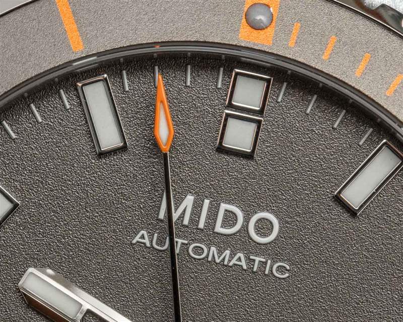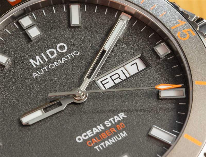 為什么是鈦而不是鋼?Mido 用鋼制造大多數版本的海洋之星——實際上,這在這個價位和這個市場上更有意義。這個參考 M026.430.44.061.00 和表帶上的參考 M026.430.47.061.00 版本是該品牌目前唯一生產的鈦金屬版本。這使它們成為最不常見和最獨特的地段。在我看來,它們也是最物有所值的,因為在這個價位上,有很多好的潛水表,但在全鈦表殼和相配的表鏈中幾乎沒有什么很棒的選擇。這款手表幾乎看起來像鋼,但重量減輕了 30% 左右,而且更加獨特。