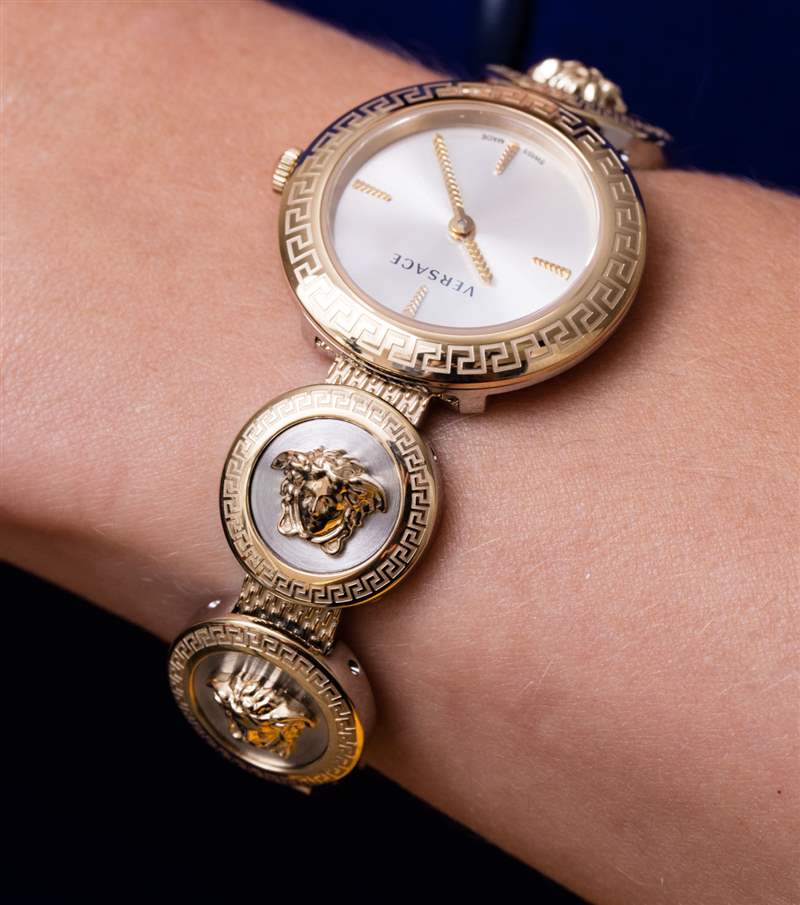 這款 Versace 女士手表的名字對我來說有點有趣,因為它的字面意思。換個角度看,“Stud Icon”手表聽起來像是男人而不是女人可能會戴的東西。該術語實際上是對手表如何突出展示范思哲的美杜莎標志性美杜莎圖案的評論,以時尚品牌使用的鉚釘上的圖像形式出現。你真的需要知道這一點,而且你還需要知道許多其他同樣突出美杜莎螺柱圖標的 Versace 手表名稱中實際上沒有任何這些術語。如果由我來決定,我會對這些名字進行更多的焦點小組測試。至少在手表設計與時尚品牌的匹配方面,所有的努力都是正確的。廣告訊息廣告信息結束