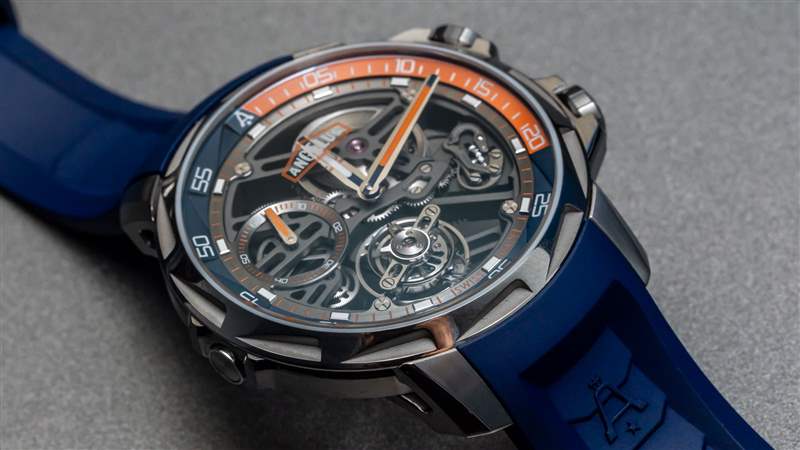 Angelus U51 表殼值得在更多型號中使用,我相信 Angelus 會慢慢玩轉(zhuǎn) U51 Tourbillon Diver 的不同變體,除了這款玩具般的藍橙款或藍黃款(稍有不同)之前的擋板)。它是該系列的絕佳選擇,因為明亮而運動的色彩體現(xiàn)了 Angelus 所追求的運動手表主題。工具表愛好者無疑會發(fā)現(xiàn) U51 Tourbillon Diver 存在問題,即使它確實滿足其防水要求。相反,人們應(yīng)該將 Angelus 歸入與 MB&F 或 Urwerk 相同的類別,作為可穿戴的“鐘表藝術(shù)品”。Angelus U51 Tourbillon Diver 可能更接近傳統(tǒng)時計,而不是純粹美學上的異國藝術(shù)品,但它仍然有一個引人入勝的故事,這將有助于它贏得它應(yīng)得的未來崇拜地位。