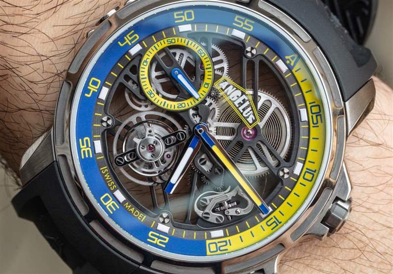 如果我可以對 U51 Tourbillon Diver 進行任何更改,那將有助于提高時針和分針的可見度。作為一款表盤上也有許多功能的鏤空手表,易讀性已經(jīng)受到了攻擊。加上各種重疊的顏色和表面紋理,表盤一目了然。易讀性是運動手表的一個真正問題,但對于 U51 Tourbillon Diver 的可取性來說是一個小問題。這只表是如此有趣,如此有限,并且對于其他手表收藏家來說有著如此精彩的故事,我真的不能認為表盤是這款手表不會被社區(qū)充分慶祝的原因。然而,這確實意味著 Angelus 有能力為未來的版本調(diào)整設(shè)計,即使產(chǎn)品的創(chuàng)造者已經(jīng)不在公司了。