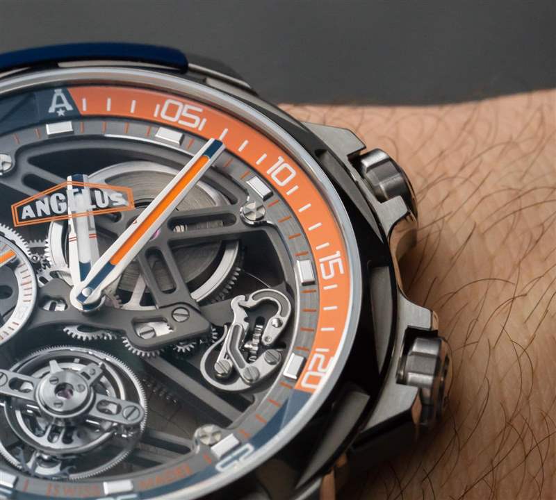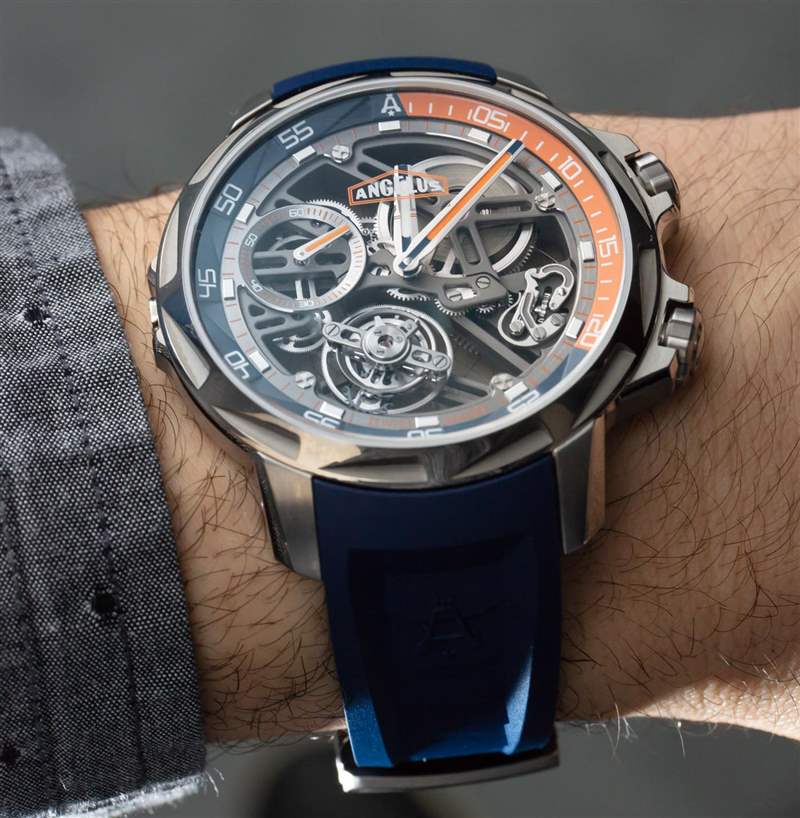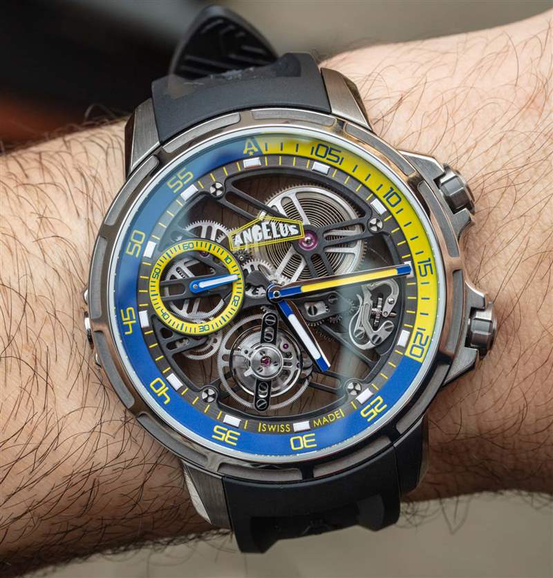 正如我上面提到的,Angelus U51 Tourbillon Diver 是由真正的手表愛好者和收藏家設(shè)計的。這意味著,至少,手表需要舒適且可穿戴——而且確實如此。在過去的日子里,像 Angelus U51(主題)這樣的東西不僅會貴得多,而且從人體工程學的角度來說,通常也無法佩戴。45 毫米寬的 5 級鈦金屬表殼在手腕上具有驚人的纖細感覺(約 12.5 毫米厚),并且可以緊緊地包裹在您的手臂上。搭配橡膠表帶,這款相對輕巧的腕式腕表佩戴起來令人愉悅,但佩戴者將不得不向許多旁觀者解釋他們選擇的腕表。廣告訊息廣告信息結(jié)束