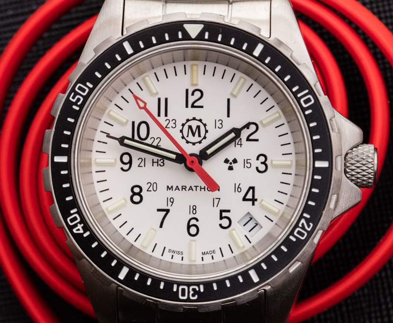 為了確保可讀性通常保持較高(與所有 Marathon 手表一樣),對手表進行的另一個小改動是指針的顏色,現在指針的顏色是黑色而不是白色。幾代人以來,如果您想要一款 Marathon 軍用/運動/潛水表,唯一的顏色就是黑色——這正是軍方想要和認可的。如果您的客戶有嚴格的需求并且只想要黑色表盤,那么這就是您要做的。今天,Marathon 肯定會繼續為其軍事客戶制造手表,但其面向消費者的關注點正在成熟和發展良好。這意味著我們已經知道和喜愛了很長一段時間的工具手表系列的更多“時尚”擴展。話雖如此,回想一下,盡管 Marathon 制造軍用手表已有 80 年歷史,