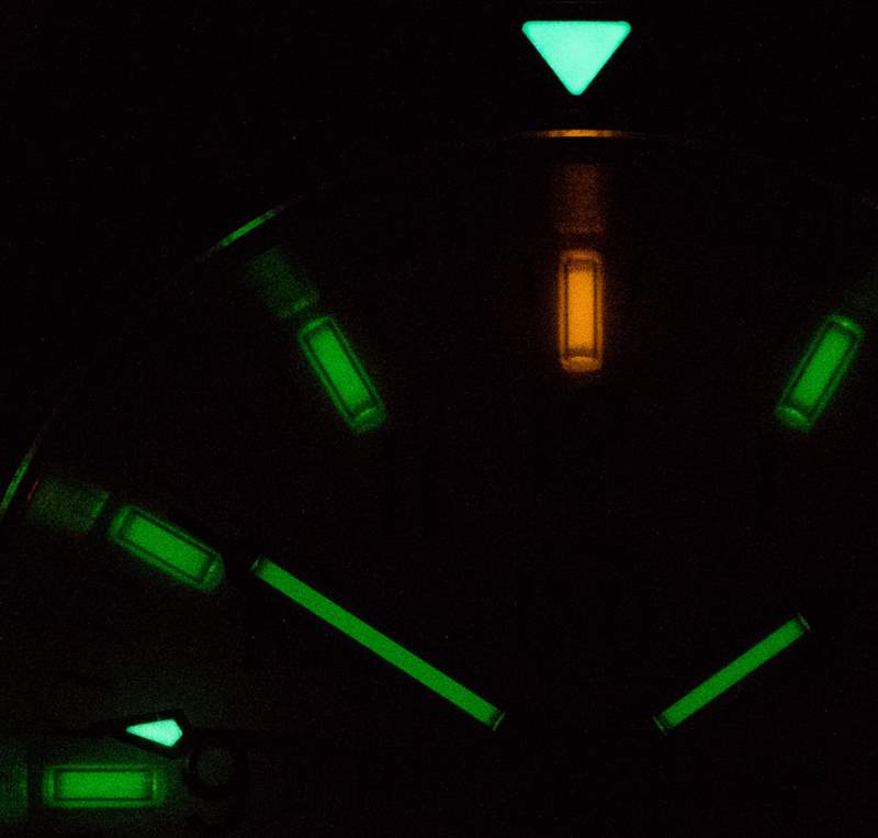 讓我們繼續談談手表本身。這是 Marathon 的入門級模型,這意味著它的價格相對實惠。Marathon 生產其最受歡迎的型號(包括 Medium Diver),配備瑞士石英和瑞士機械機芯選項。中型潛水員的石英和自動機械型號之間的成本差異不到 300 美元,這證明了公司的公平定價做法。36 毫米寬的 MSAR 配備兩種機芯選項,在這里我們看到它配備了瑞士 ETA 口徑 F06“高扭矩”機芯。為什么要高扭矩?因為手需要足夠強壯才能在那些被自發光氚氣管壓下的沉重的手周圍移動。氚氣管是一項令人難以置信的功能,可確保 Marathon 手表表盤在所有照明條件下(尤其是完全黑暗)都清晰易讀。大部分是綠色的管子用在手上,以及每個小時標記上。(12點鐘的管子是橙色的,以便在黑暗中更好地視覺定位表盤。)