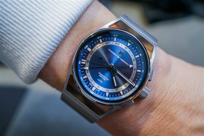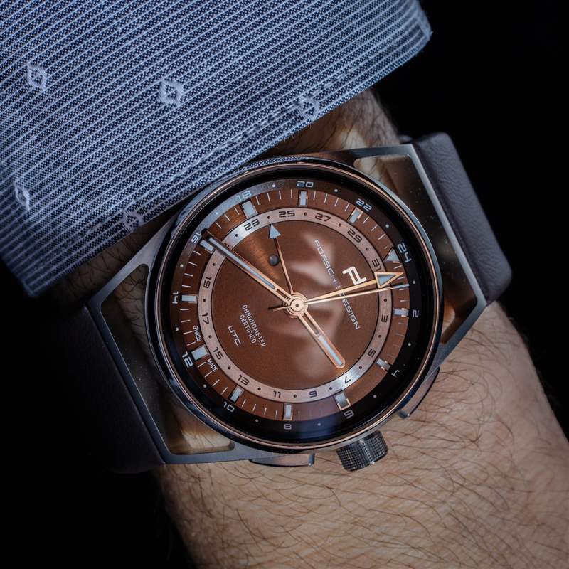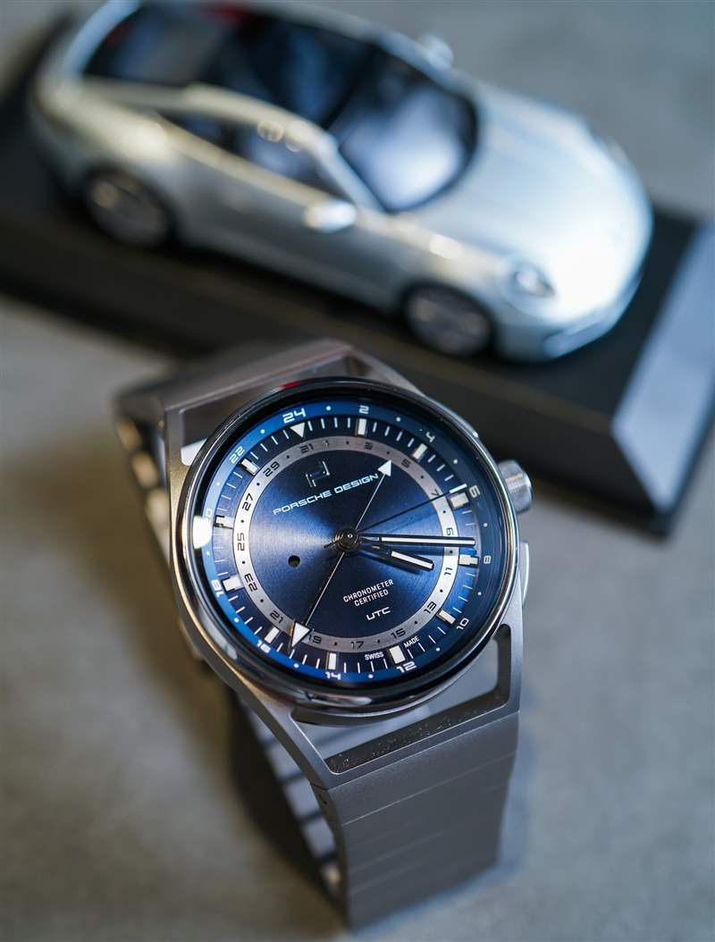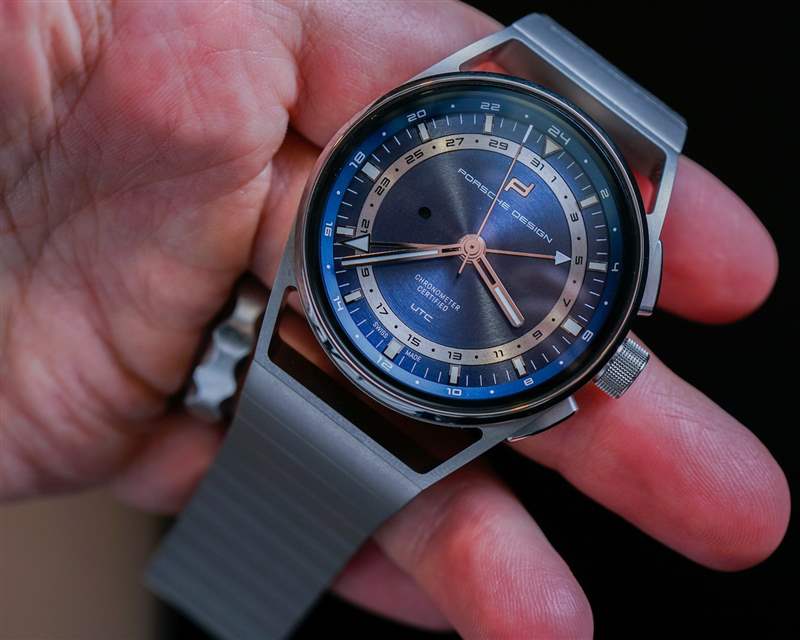 Porsche Design 現在的整體質量和結構確實令人印象深刻。1919 Globetimer UTC 的細節包括拋光鈦金屬表圈和按鈕上的一些角度。帶紋理的表冠既好看又抓握非常舒適。表盤既吸引人又清晰易讀,即使它不會立即讓您覺得新穎或與眾不同。我真正喜歡 1919 年 Globetimer UTC 的地方在于,你真的感覺到這是一款現代設計的產品,但它源于悠久的專業知識和風格傳統,與當今最好的汽車的感覺非常相似。有點像保時捷汽車?保時捷設計公司愿意這樣想。